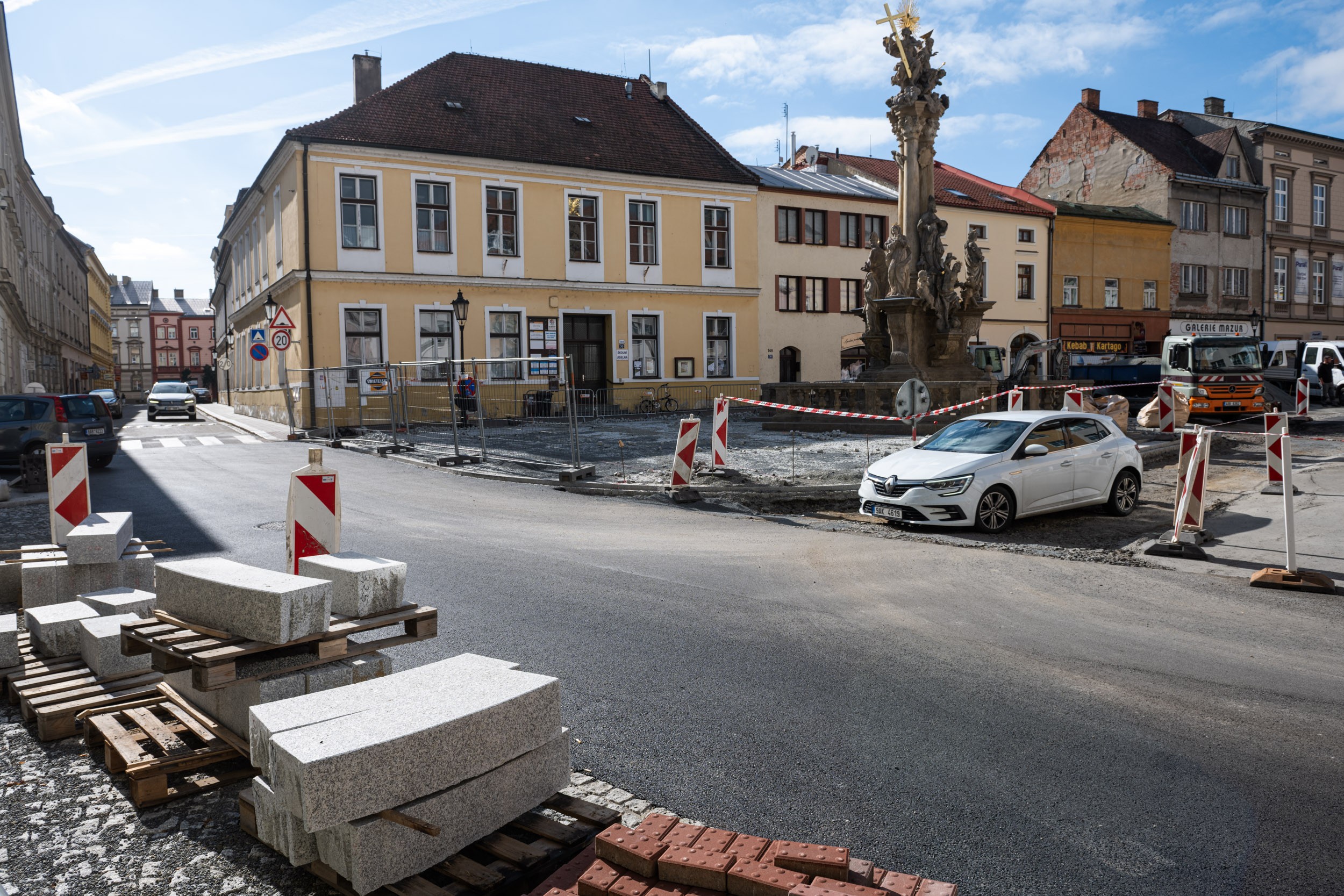 Město okolí morového sloupu mění od srpna. Úpravy se týkají parkovacích ploch, mobiliáře i zeleně. Cílem je zvětšení prostranství okolo sloupu, aby se zvýšila bezpečnost chodců a současně, aby tato dominanta náměstí více vynikla. U sloupu tak bylo zrušeno kolmé parkovací stání. Vznikl tak prostor, který opticky propojí s odpočinkovou plochou u budovy, v níž sídlí Úřad pro zastupování státu ve věcech majetkových, komunikace z žulové kostky. Doplněn bude mobiliář, jako jsou lavičky a odpadkové koše. Zpevněné plochy bude lemovat žulový obrubník tak, aby co nejvíce dotvářely historizující ráz prostoru okolo sloupu. Doplněna bude i zeleň v podobě tří stromů nižšího vzrůstu – akátů, a další zeleně v mobilních kontejnerech.