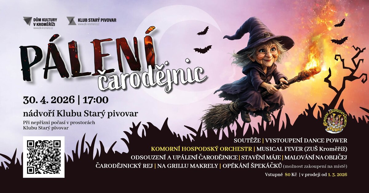 Poslední dubnový podvečer předcházející takzvané filipojakubské noci bude nádvoří Klubu Starý pivovar patřit sletu a následnému pálení čarodějnic. Ale oznámení není třeba brát úplně doslova, nechystá se žádné drama a nikomu ze zúčastněných nebude ublíženo, naopak – bude velká legrace. „Čarodějnický rej měl v loňském roce velký úspěch a věřím, že i letos přiláká na radniční dvůr celé rodiny, které si budou chtít užít jednu z prvních letošních akcí pod širým nebem. Ta spojuje dvě tradiční jarní události – pálení čarodějnic a stavění májky,“ uvedl radní Jiří Kašík.