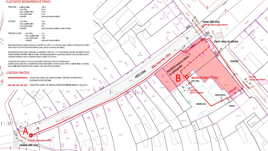 Zakázku na stavbu výtahu a rekonstrukci sociálních zařízení získala brněnská společnost STCH, která nabídla cenu téměř 11 milionů korun. Město však část nákladů, zhruba 4,8 milionu korun, pokryje z dotace od ministerstva pro místní rozvoj, konkrétně z dotačního titulu Odstraňování bariér v budovách městských a obecních úřadů. Součástí dotačního projektu je právě i bezbariérová trasa v Kovářské ulici.